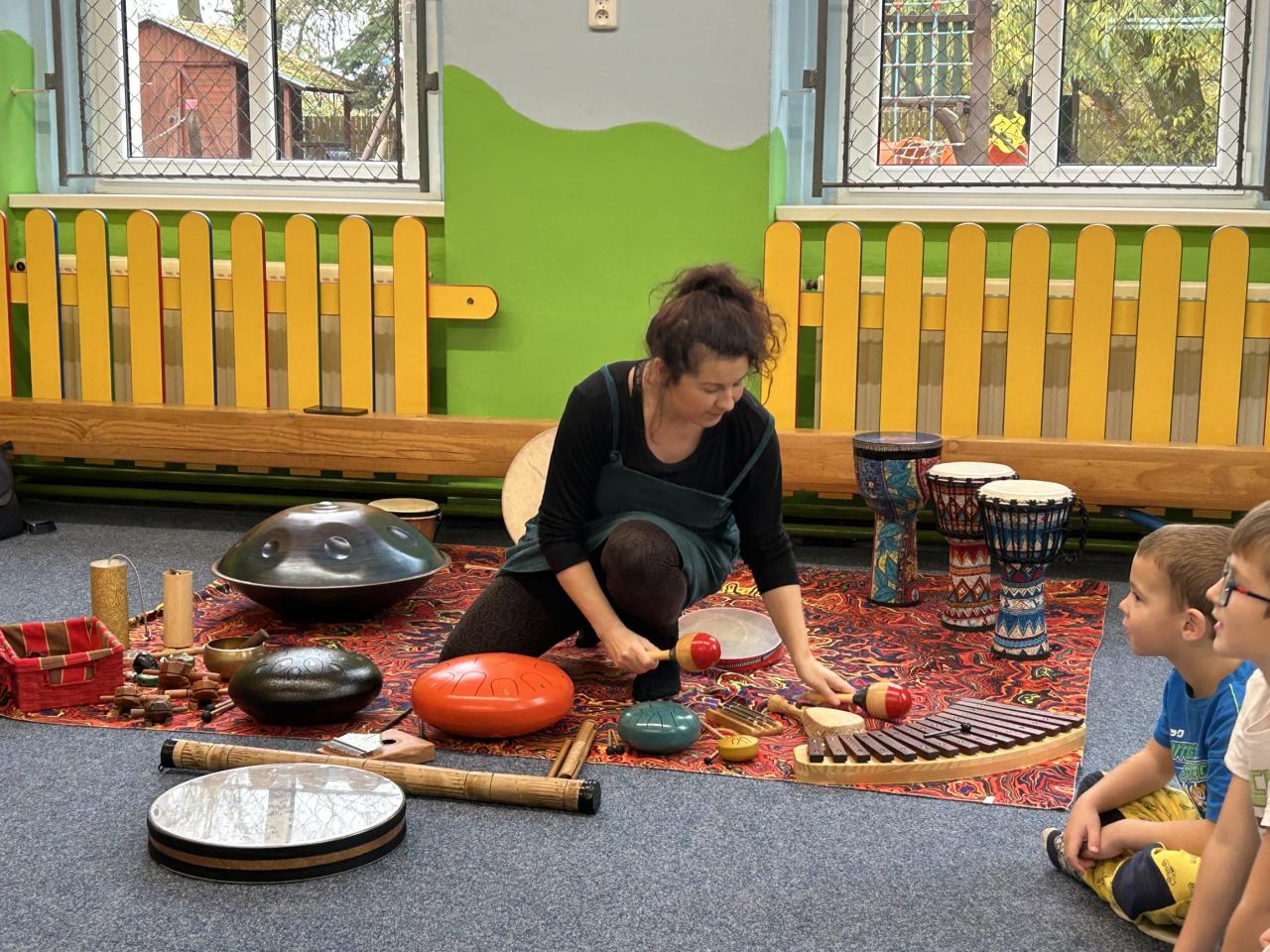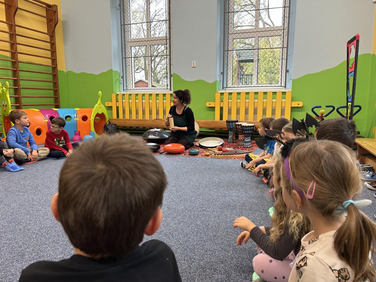 Dnes jsme si ve školce užili hudební program - muzikoterapii. Děti si mohly vyzkoušet spoustu zajímavých hudebních nástrojů, zahrát si pohádku a zazpívat.